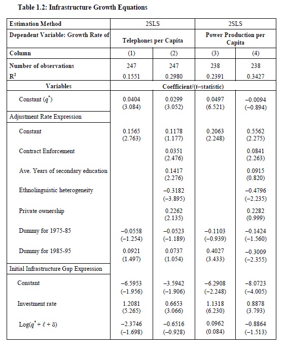 The relationship between infrastructure capital and economic growth has been controversial. A number of empirical studies have found very high returns to infrastructure investment (Aschauer, 1989; Canning and Fay, 1993). But, the robustness of the results have been questioned in other empirical studies and surveys (Gramlich, 1994; Munnell, 1992).2 A major problem seems to be that interactions between infrastructure and GDP are mediated in the short run by a host of variables that cannot all be captured in statistical studies, and in the long run causality between infrastructure and GDP cannot be established. While infrastructure may give rise to higher productivity and output, past and future economic growth also tend to raise the demand for infrastructure services and induce increased supply.3 Moreover, infrastructure inadequacies may not have tangible output consequences in the short or medium run because infrastructure services have substitutes and the assets may be used with different intensities.4 As a result, the empirical basis of the case for high returns to infrastructure investment has been elusive.