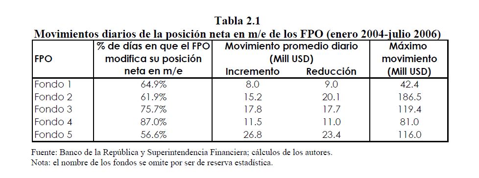 El tamaño relativo de las transacciones de las Administradoras de Fondos de Pensiones (AFP) frente a los demás participantes del mercado cambiario ha sido objeto de preocupación de académicos y ejecutores de política. Las AFP pueden transar grandes volúmenes, lo cual podría influenciar las decisiones de inversión de otros agentes, exacerbando presiones sobre los precios. Este documento estudia el impacto de las operaciones de los Fondos de Pensiones Obligatorias (FPO) sobre el tipo de cambio y el precio de los TES. Los resultados sugieren que los fondos de pensiones son bastante activos tanto en el mercado cambiario como en el de deuda pública interna; más aún, se evidencia una fuerte actividad de trading de corto plazo por parte de algunos fondos en estos mercados. Sin embargo, no se evidencia que los movimientos de distintos fondos estén positivamente correlacionados. Se concluye que sus operaciones tienen un grado de asociación fuerte con el movimiento del tipo de cambio y de las tasas de los TES tasa fija de largo plazo.