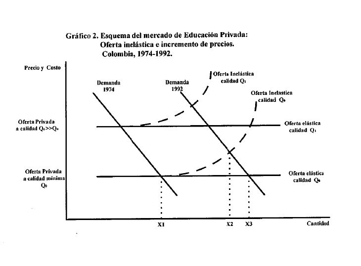 En los últimos años se ha observado un incremento de los precios de la educación privada por encima de la inflación observada. En las décadas recientes la educación básica privada ha sido muy dinámica y hoy atiende un gran número de niños y jóvenes colombianos, pero simultáneamente una buena proporción de estudiantes potenciales no asiste a la educación básica a pesar de pertenecer a hogares que la demandan y cuentan con ingresos suficientes para comprarla en el mercado, esto es, la oferta privada es "inexplicablemente" inélastica. De otro lado, existe evidencia acerca de los beneficios potenciales de mejorar la calidad en la educación - pública y privada - y específicamente por su impacto sobre el logro y la eficiencia -por la reducción de la repitencia y la deserción-. No obstante, en Colombia la capacidad de explicación de la calidad por medio de insumos escolares observables es aun muy limitada. Este artículo busca sopesar las bondades y/o perjuicios de la regulación pública de precios de la educación privada con base en los índices disponibles de calidad escolar. A partir de consideraciones económicas, se concluye que la intención de ejecutivo de promover la calidad por medio de la regulación pública de los precios de la educación privada, en función de un índice de variables observables de calidad puede generar ineficiencia- restricciones de oferta entre otros-, pues genera señales imprecisas de calidad e inhibe la operación de mecanismos competitivos de mercado. Parecería preferible -más eficiente- optar por un esquema regulatorio más sencillo que permitiera la negociación libre de contratos educativo en los primeros grados escolares y, que para la fijación de precios en períodos más avanzados del contrato, definiera mecanismos equitativos de renegociación, donde el regulador público operaría como arbitro ante la eventual inexistencia de acuerdos voluntarios entre las partes. Adicionalmente, para lograr la promoción de la calidad y la operación más eficiente de este esquema de negociación directa padres-colegio, se debería proveer pública y gratuitamente información específica, precisa y comparativa acerca del desempeño o logro de cada colegio en los diferentes niveles educativos.