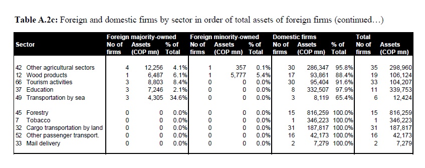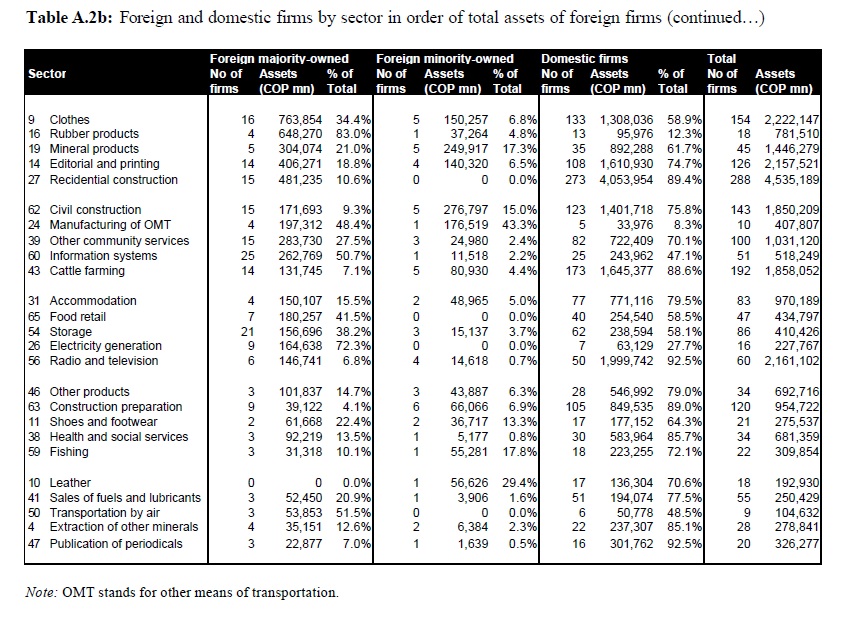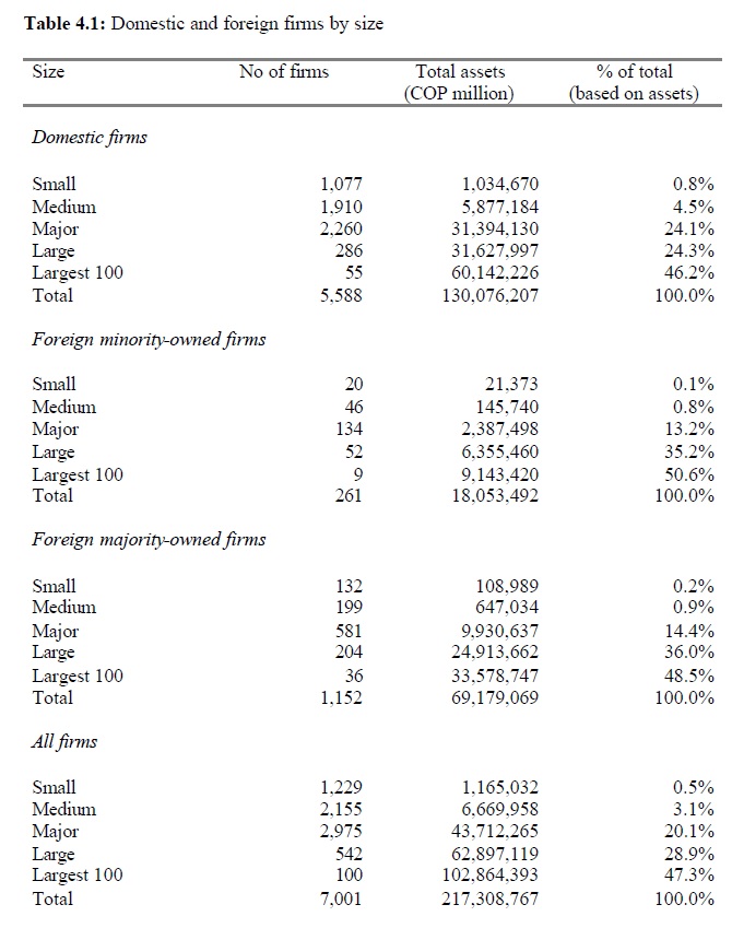 This paper studies foreign and domestic firms in Colombia and, in particular, whether these firms behave differently. The study uses a dataset containing the 2003 balance sheets and income statements for some 7,001 firms. The dataset was obtained from t