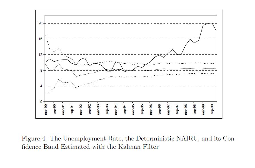 As originally drawn and estimated by professor Phillips, the Phillips, curve is a curve indeed, not a straight line as often thought. Following Laxton, et. al. (1999) we estimate a convex Phillips curve and model de NAURI as a variable that is unobserv