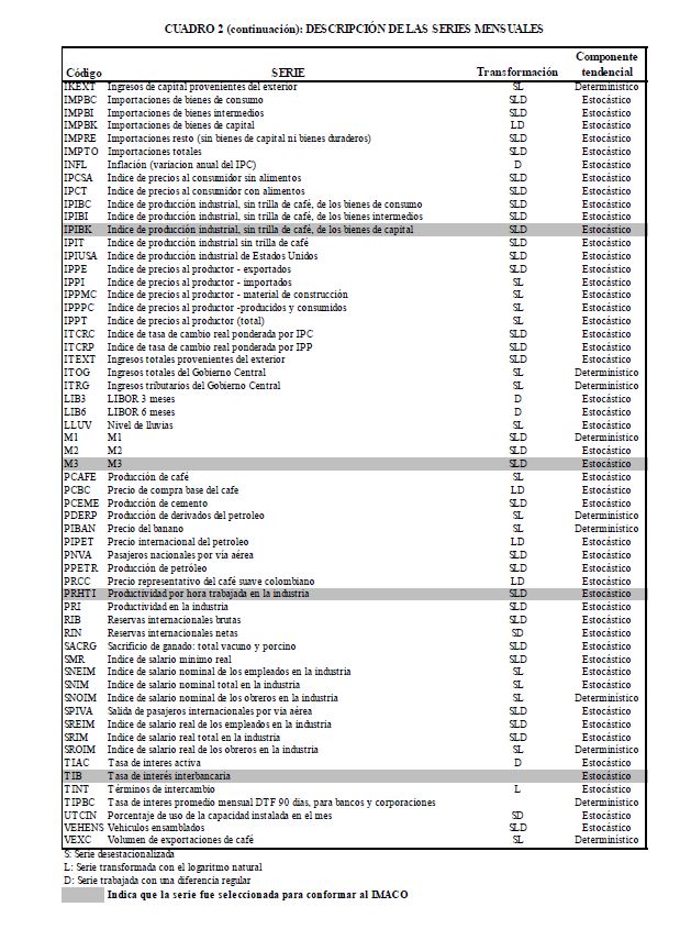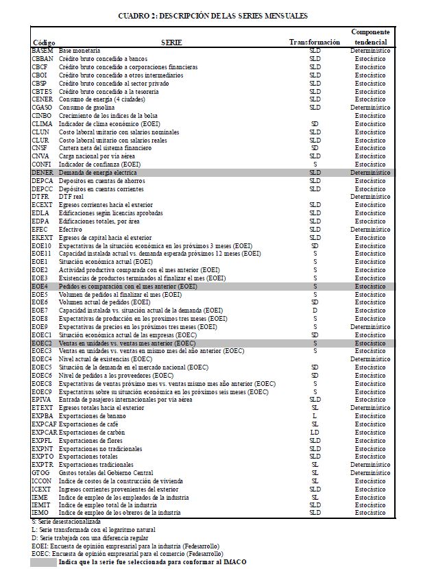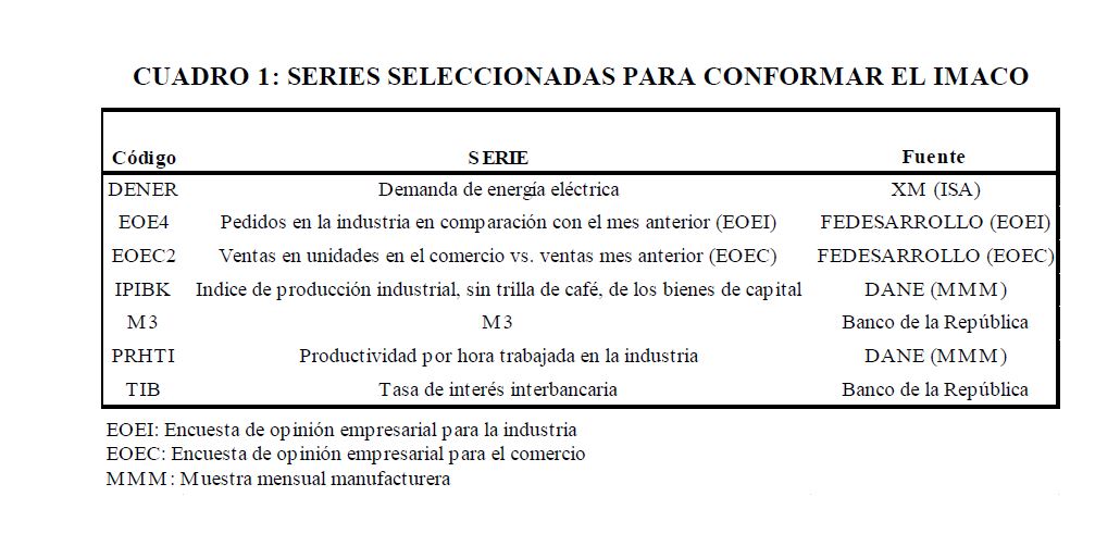 El "IMACO": un índice mensual lider de la actividad económica en Colombia
