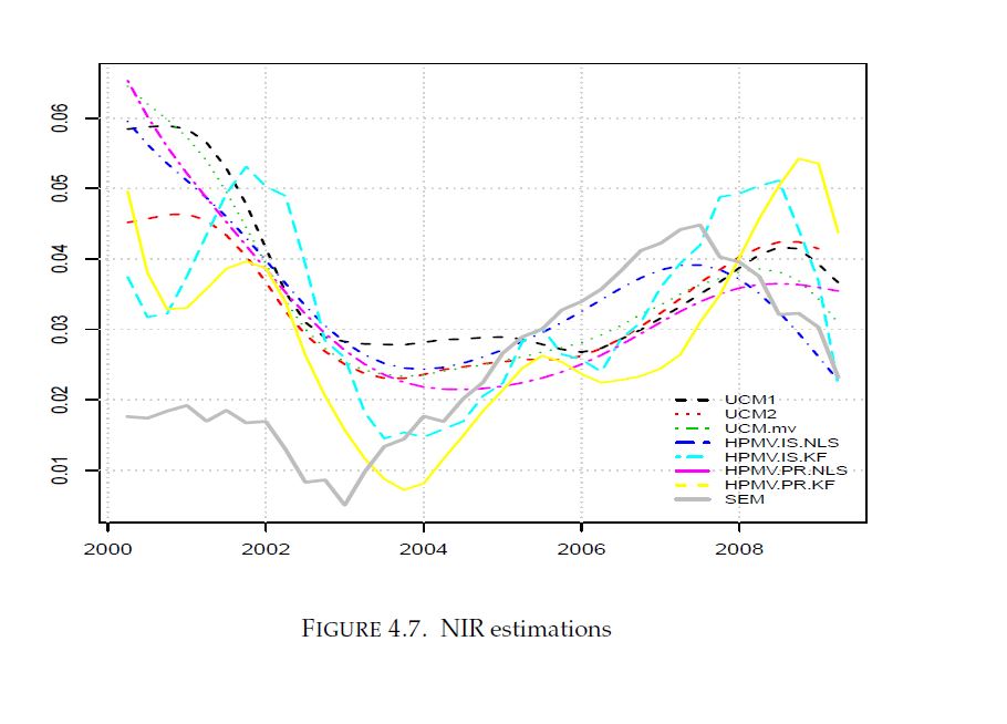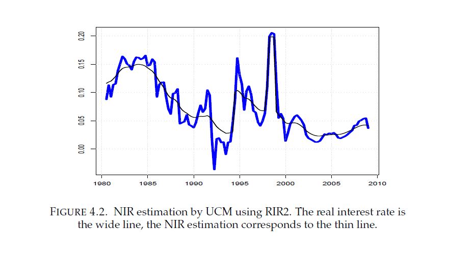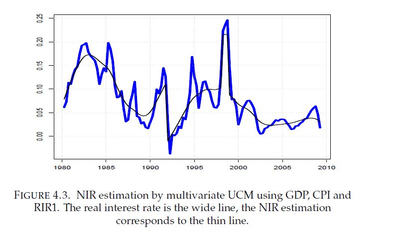 Three methodologies to estimate the natural interest rate, NIR, are implemented for the Colombian economy. Two methods are statistical filters and the third involves some economic theory. The first method is based on unobserved components decomposition of