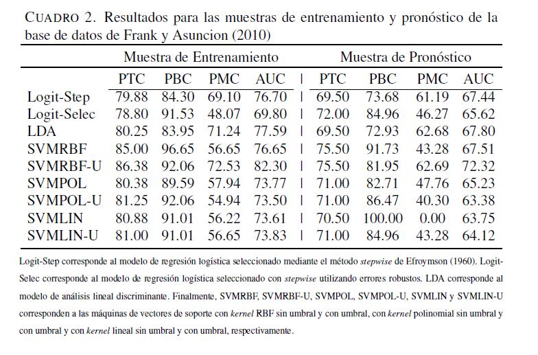 Pronóstico de incumplimientos de pago mediante máquinas de vectores de soporte : una aproximación inicial a la gestión del riesgo de crédito