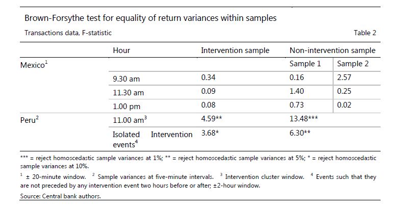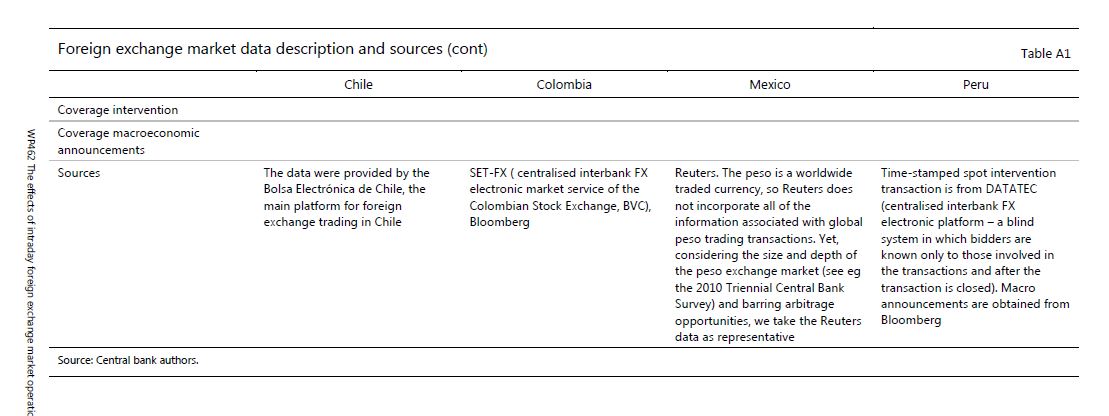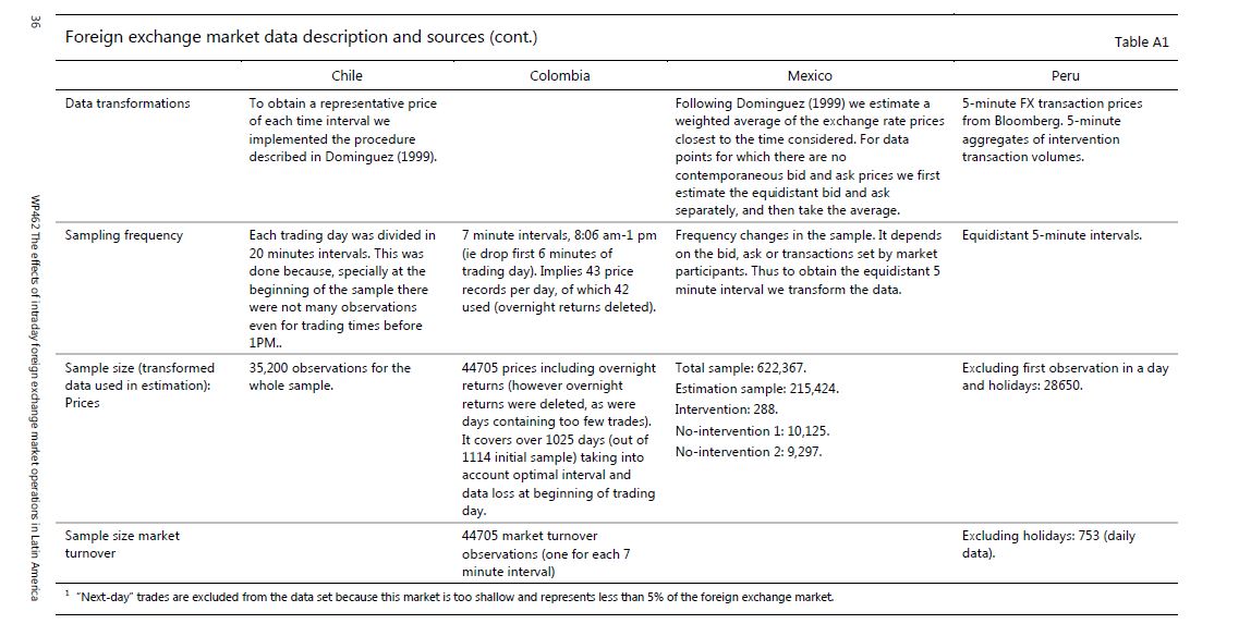 The effects of intraday foreign exchange market operations in Latin America : results for Chile, Colombia, Mexico and Peru