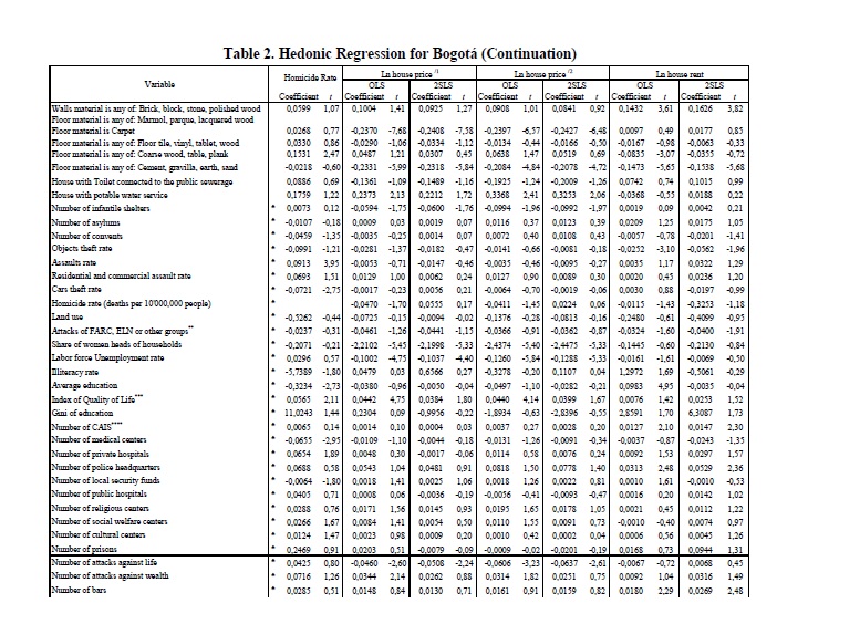 We use hedonic price models to estimate the value households are willing to pay to avoid violent crime in the city of Bogotá. We find that households living in the highest socioeconomic level (stratum 6) pay up to 7.2% of their house values in order to pr
