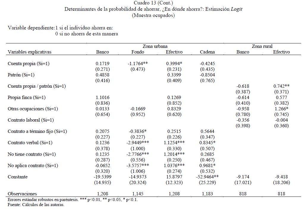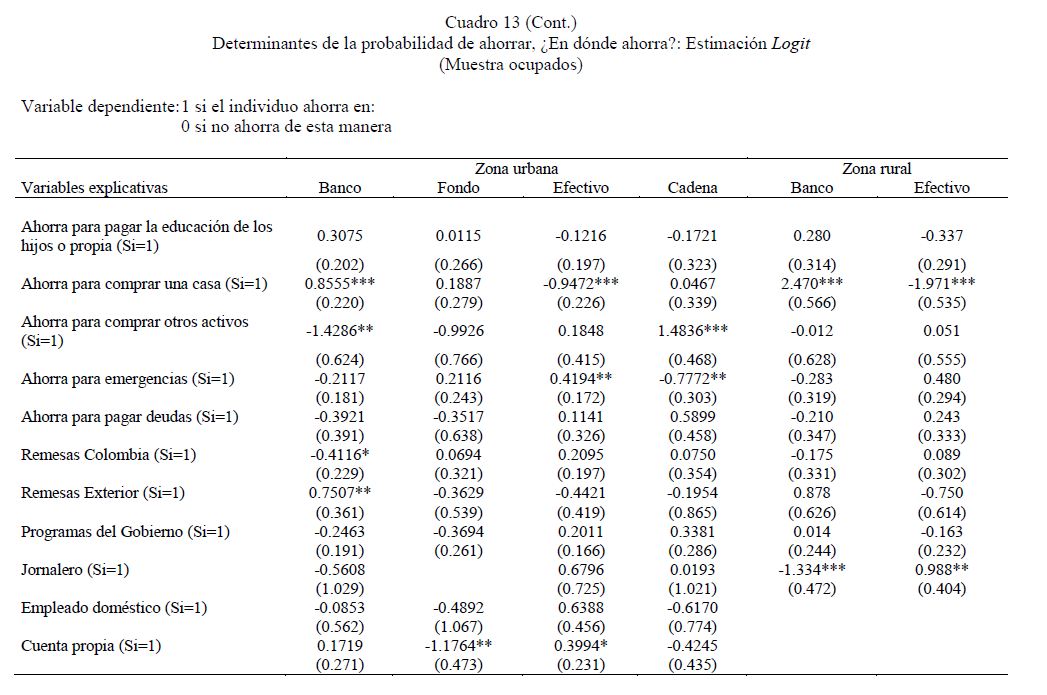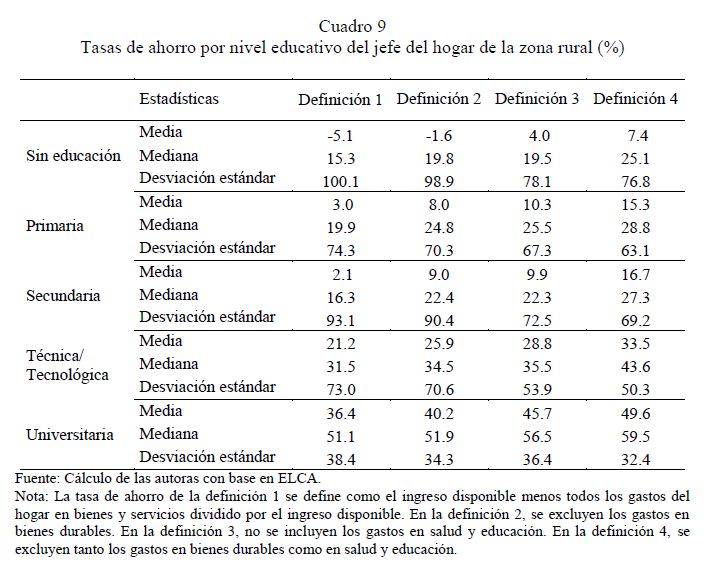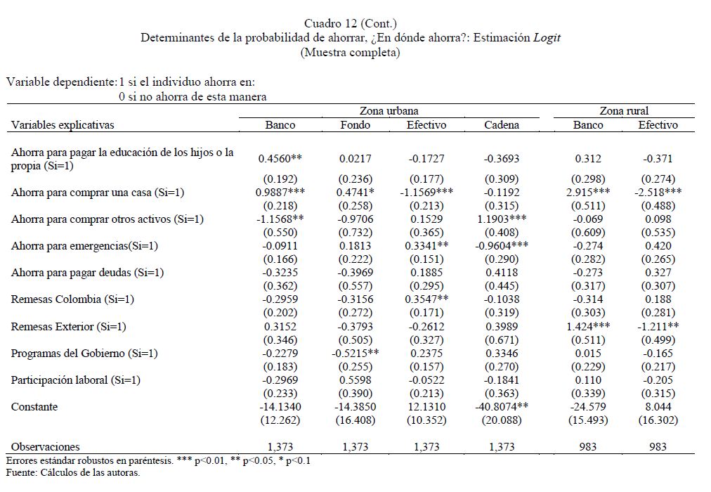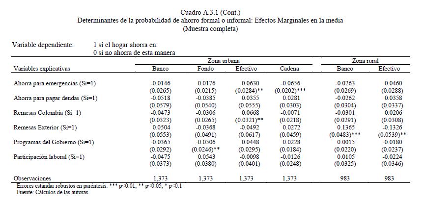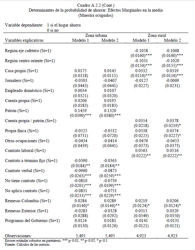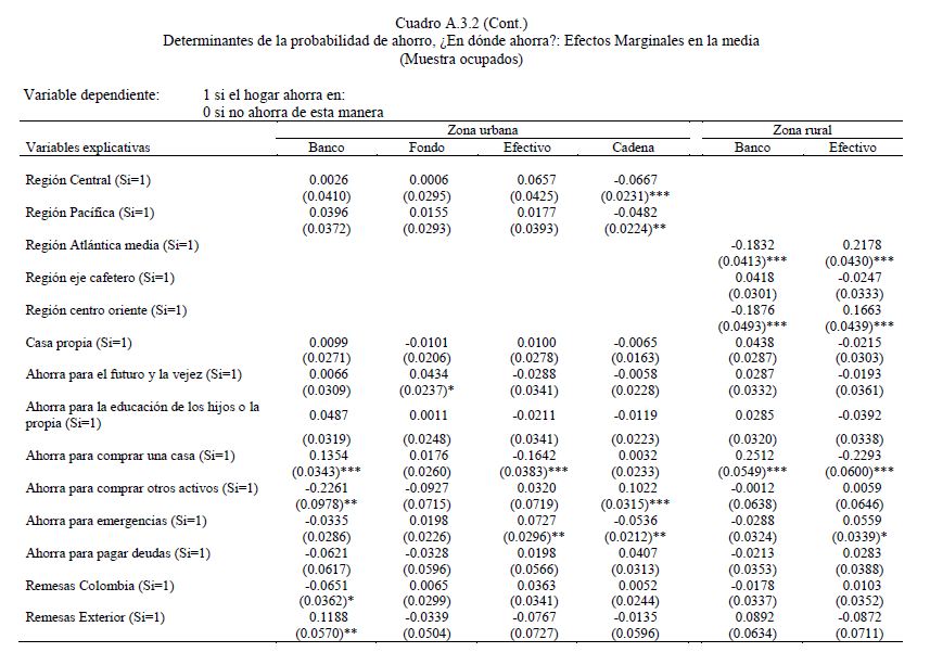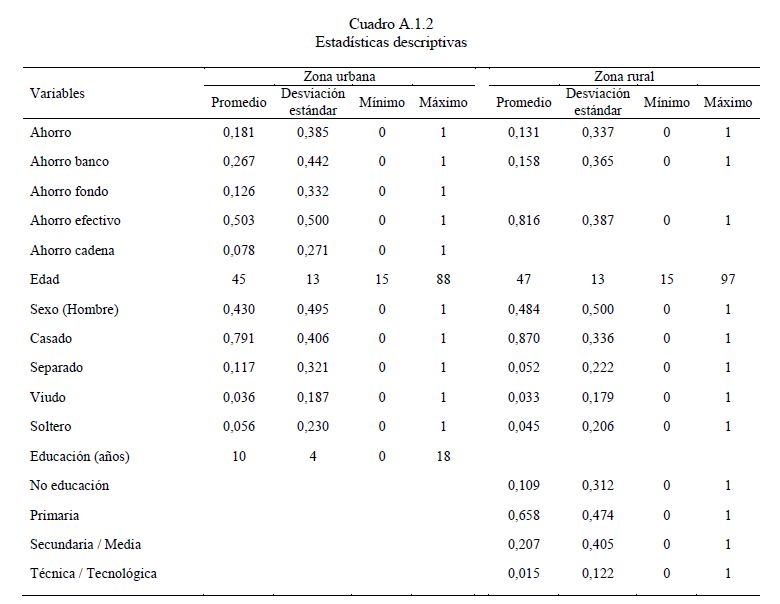 Ahorro de los hogares de ingresos medios y bajos de las zonas urbana y rural en Colombia