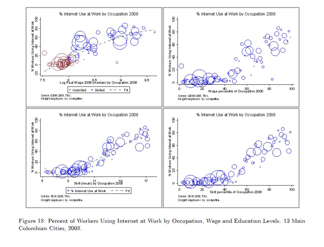 We use occupations descriptions for Brazil, Colombia and Mexico, to build computer-use related tasks intensities, and link then to series of cross sections of data of each country in order to empirically assess to what extent the observed empirical regula