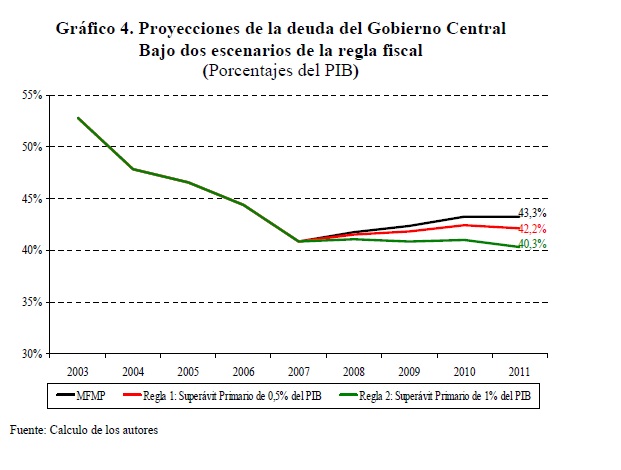 Las reglas fiscales aumentan la credibilidad en la política económica, permiten un manejo fiscal contracíclico y sostenible intertemporalmente, y contribuyen a la estabilidad y al crecimiento económico. El gobierno colombiano ha usado reglas fiscales para limitar el crecimiento del gasto y el endeudamiento de los entes territoriales y para propiciar la transparencia y responsabilidad fiscal del sector público. Sin embargo, el alcance de dichas reglas ha sido limitado, como lo evidencia la naturaleza estructural del desequilibrio fiscal del gobierno central y la procíclicidad de su política. En este documento se formula y evalúa una regla fiscal cuantitativa de 1% del PIB de superávit primario estructural para el gobierno central, con el fin de consolidar el proceso de ajuste de las finanzas públicas del país y blindar su manejo hacia el futuro. La aplicación contrafactual de la regla muestra que si se hubiera adoptado a comienzos de la década, el gobierno hubiera hecho ahorros anuales de por lo menos 0,7% del PIB entre 2001 y 2006. Si se acogiera este año, se lograrían ahorros del mismo monto entre 2008 y 2011, con lo cual se reduciría el nivel actual de la deuda en 3 puntos del PIB al final del período.