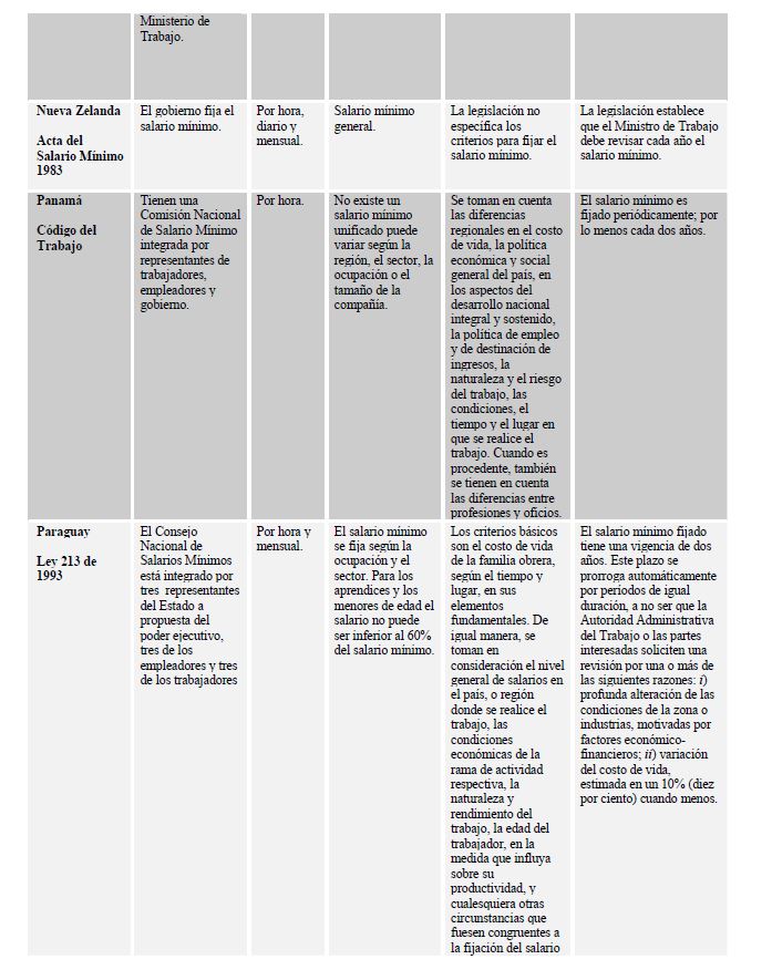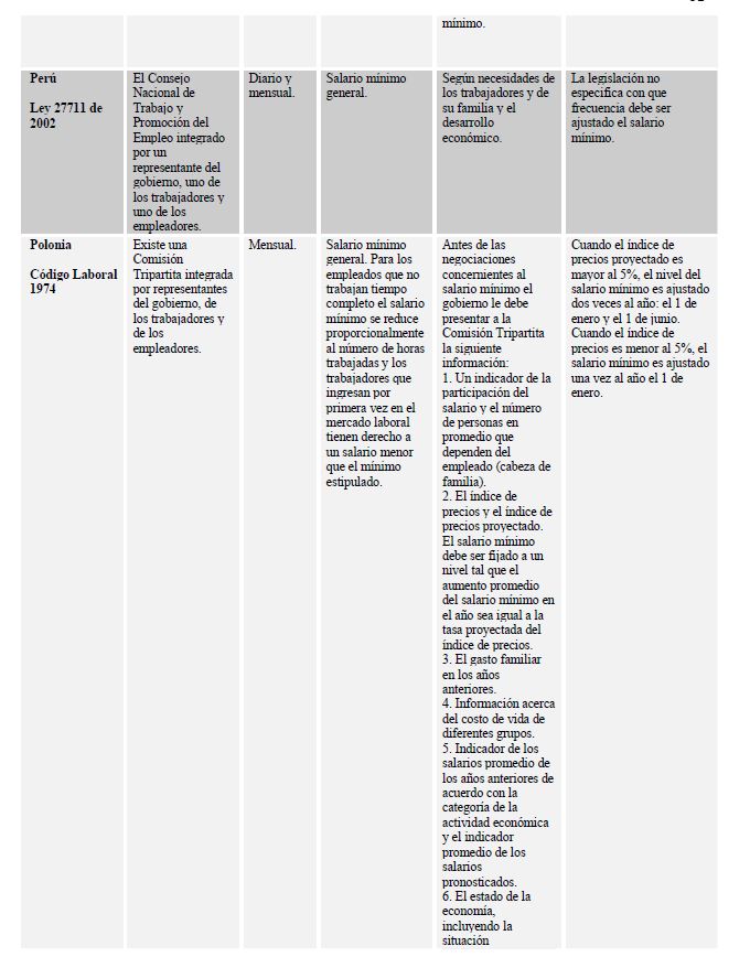 El salario mínimo: aspectos generales sobre los casos de Colombia y otros países