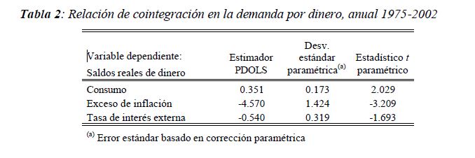 Dos rasgos característicos de muchas economías desarrolladas y en desarrollo de los últimos dos decenios han sido la gran expansión de sus agregados monetarios, por encima del aumento de su ingreso nominal, y la reducción de sus tasas de inflación. Suponiendo que la conjunción de ambos rasgos indica aumentos significativos de la demanda de saldos reales de dinero, en este documento se reporta un intento de estimación de la demanda de saldos reales de moneda doméstica mediante un ejercicio realizado bajo el método denominado "mínimos cuadrados ordinarios dinámicos en panel" para una muestra de 63 países a lo largo del período 1975-2002. De acuerdo con los resultados, los aumentos del gasto en consumo privado, la caída de los diferenciales de inflación con respecto a Estados Unidos y la reducción de la tasa de interés en Estados Unidos (tasa a tres meses sobre Treasure bills) contribuyeron a aumentar la demanda de dinero doméstico en el período mencionado,