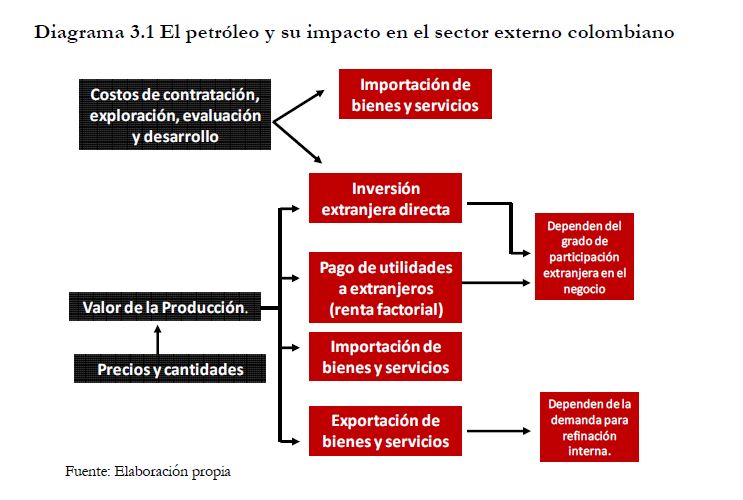 This paper analyzes the different channel by which the oil industry impacts the Colombian economy. It highlights its growing importance and its major effects on fiscal revenues, external sector, the foreign exchange market, the terms of trade and producti