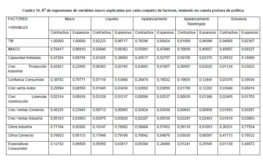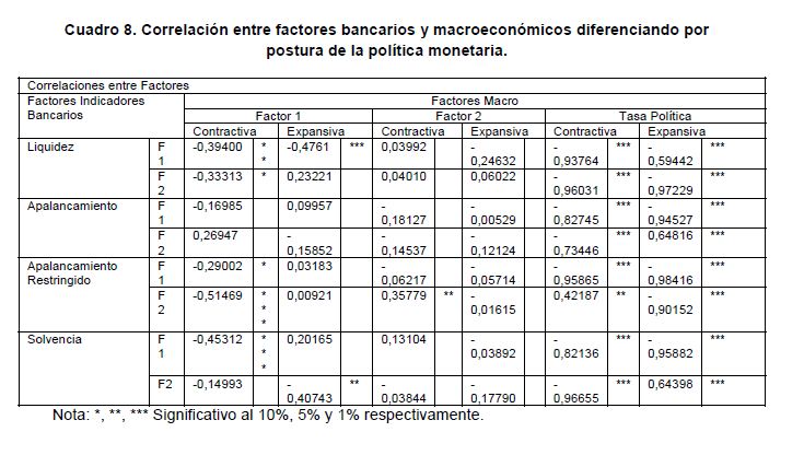 En este trabajo se utiliza un modelo FAVAR (factor-augmented vector autoregression) con el fin de examinar el papel que las condiciones financieras de los bancos, reflejadas en información recopilada a nivel individual, tienen en la transmisión de la política monetaria. El tipo de modelo utilizado acá permite, así mismo, reconciliar los niveles de análisis macro y microeconómico. En el FAVAR se incluyen factores comunes macroeconómicos extraídos de un grupo de series macroeconómicas. Así mismo se incluyen factores obtenidos de las razones financieras construidas a partir de las hojas de balance de los bancos. Se encuentra que los factores construidos a partir de las razones de liquidez, solvencia y apalancamiento contribuyen a entender la dinámica macroeconómica. Sin embargo, esta dinámica es a su vez afectada por la postura de la política monetaria. Se encuentra también que la liquidez de los bancos es muy importante en la transmisión de los choques monetarios al resto de la economía. En general, esta investigación está en la línea de mejorar los análisis de política monetaria con modelos que consideren el crédito y los aspectos financieros de la economía.