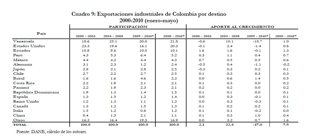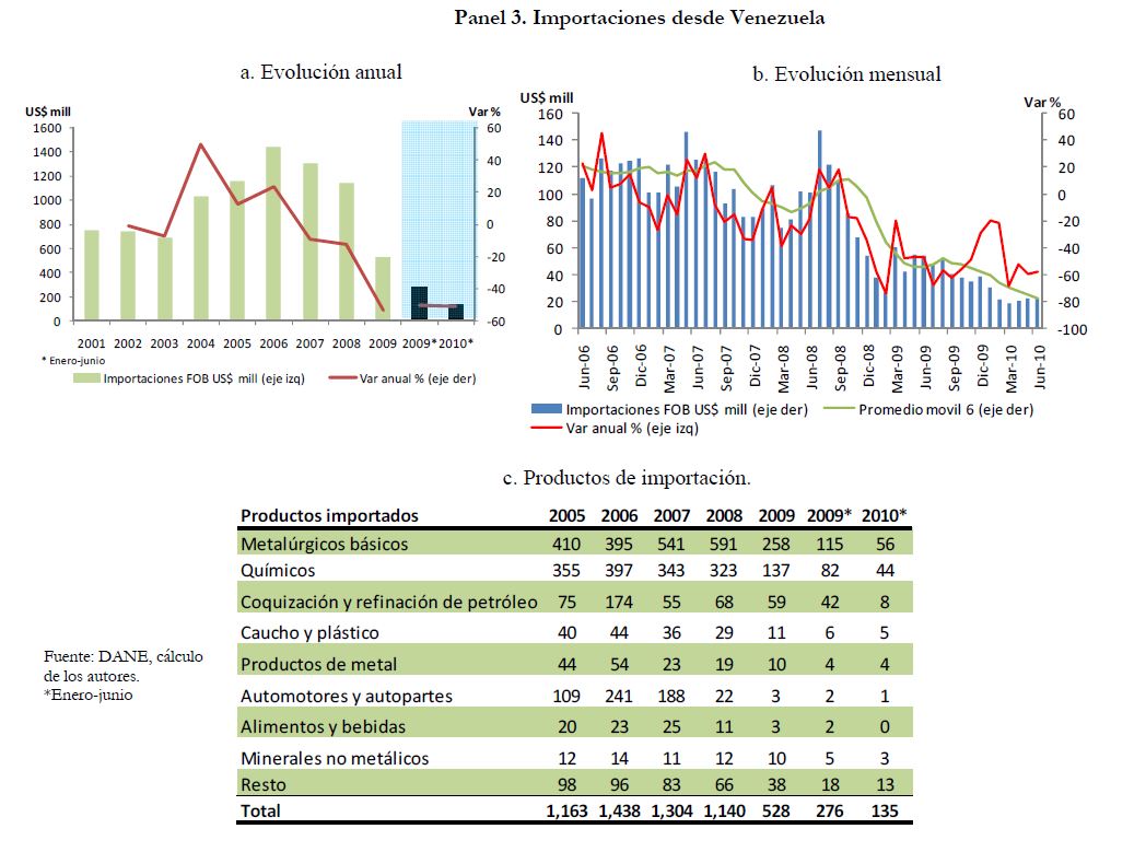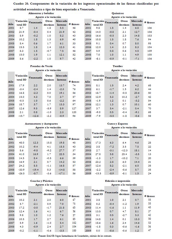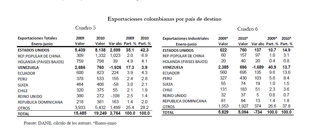 En este documento se analiza la reciente disminución de las exportaciones a Venezuela y su impacto en el panorama exportador y las firmas colombianas. Al mismo tiempo se plantean algunas reflexiones sobre la sustitución del mercado venezolano. Para esto se utilizó la base de comercio exterior del Departamento Administrativo Nacional de Estadística (DANE), y los estados financieros de la Superintendencia de Sociedades. Los resultados del estudio muestran que la caída de las ventas a Venezuela no fue un fenómeno que afectó exclusivamente a Colombia, otros países también han visto reducido el monto de sus exportaciones debido a los problemas económicos del vecino país. Las menores ventas al mercado venezolano afectaron la evolución, la estructura y el destino de nuestros despachos al exterior. Por su parte, la sustitución de este mercado no es una tarea fácilmente alcanzable en el corto plazo, pero ya se comenzó a observar en el primer semestre de 2010. A nivel de las firmas, se encontró una alta concentración en el valor despachado en pocos exportadores y un número elevado de empresas que exportan montos muy bajos. Adicionalmente, Venezuela es un mercado de aprendizaje, en el que algunas empresas logran establecerse y otras participan esporádicamente. Finalmente, para la muestra de empresas analizadas, el mercado venezolano es uno de los principales destinos de sus exportaciones, pero no es la principal fuente de sus ingresos operacionales, lo es fundamentalmente el mercado interno.