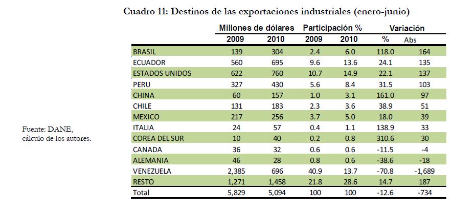 Venezuela como destino de las exportaciones colombianas: evolución reciente y efecto sobre el panorama exportador y las firmas colombianas