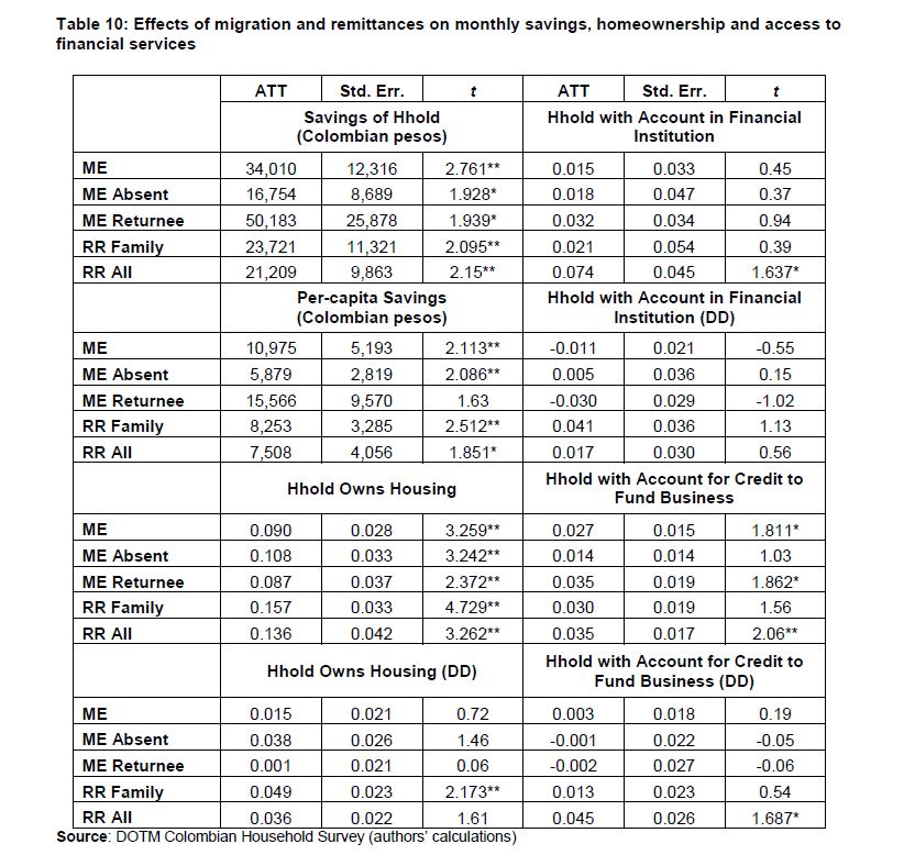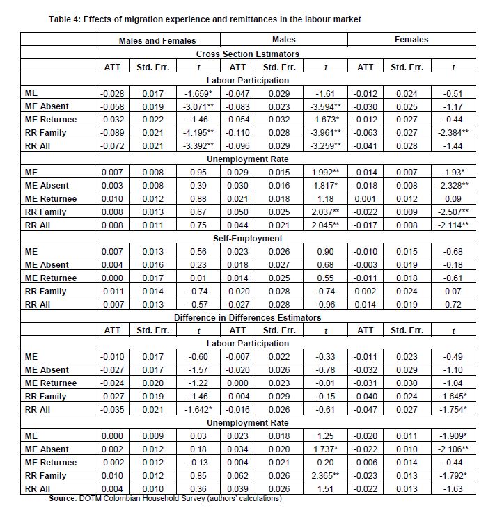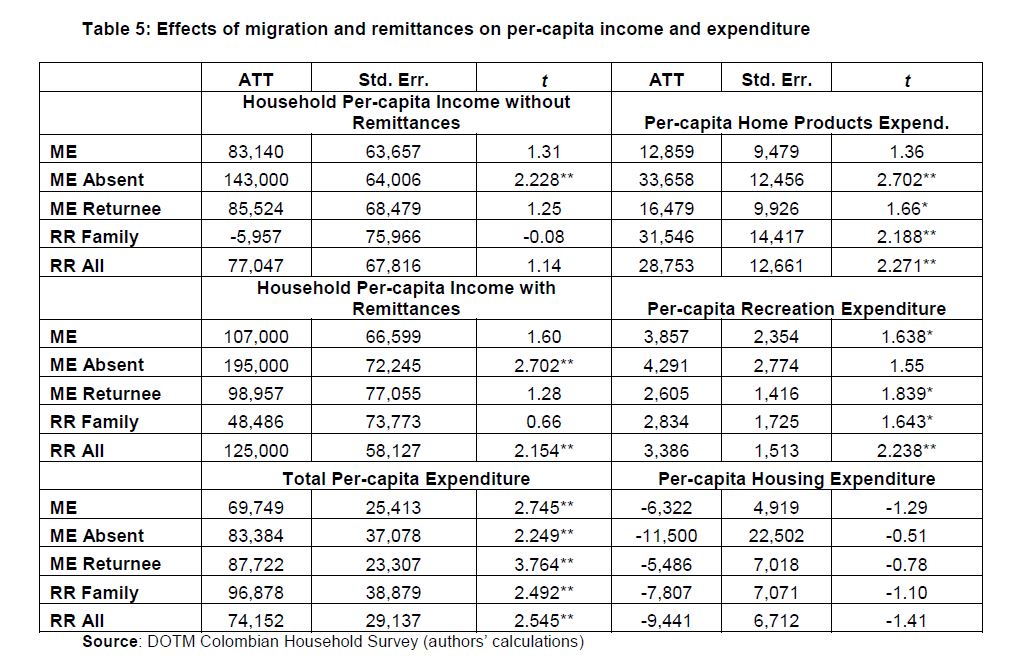 Measuring economic and social impacts of migration in Colombia: new evidence