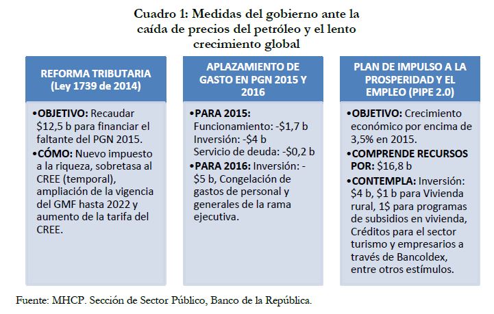 The Colombian economy has been hit by the sharp fall of international oil prices, which was characterized for being unexpected, sudden and of considerable magnitude. According to analysts, this shock could be persistent and last for several years. On top