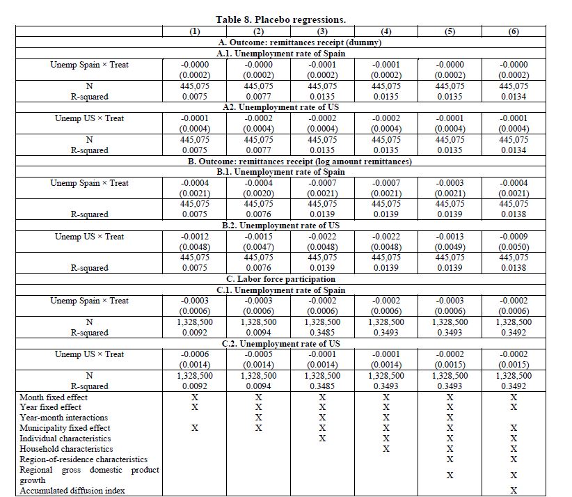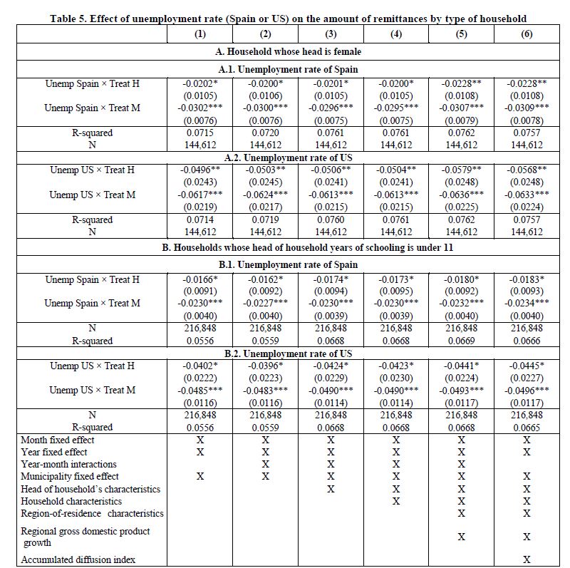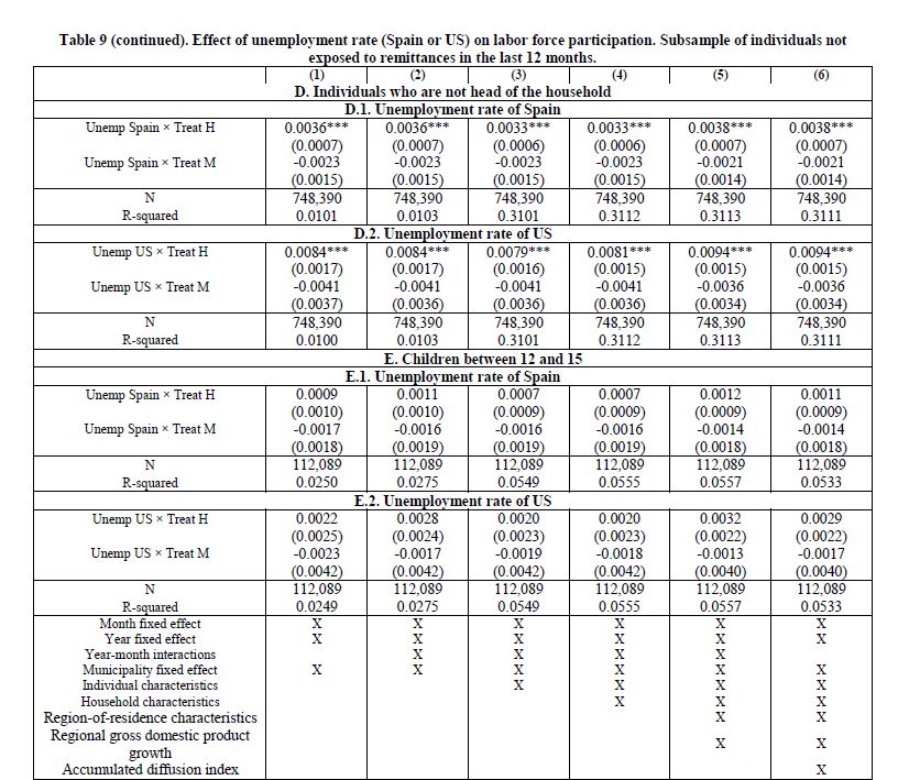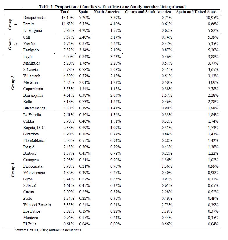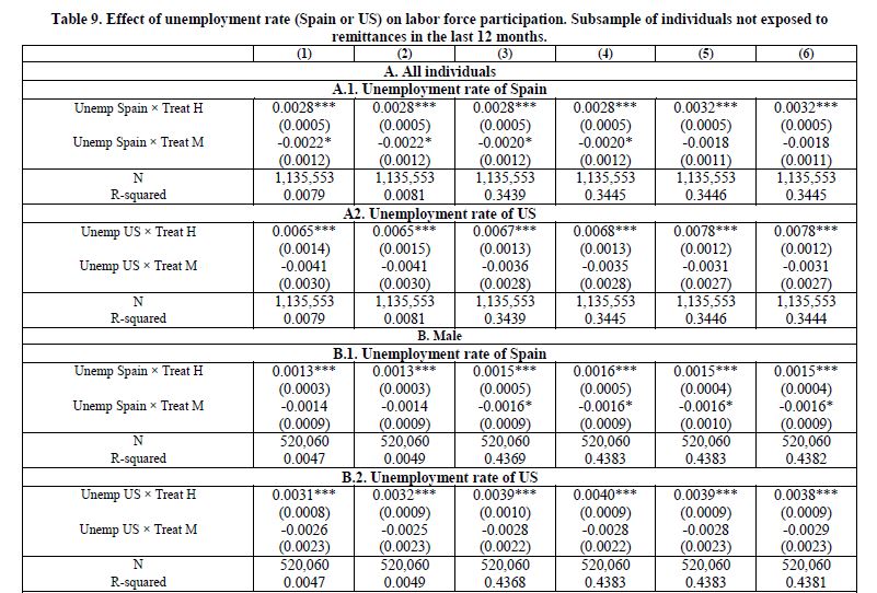 This paper presents evidence of the effect of the recent phases of the business cycle in Spain and United States, proxied by their respective unemployment rates, on the labor market of Colombian cities with high migration tradition. These countries are th