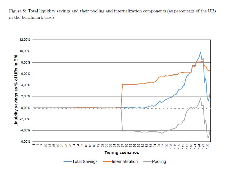 Non-monotonic tradeoffs of Tiering in a large value payment system