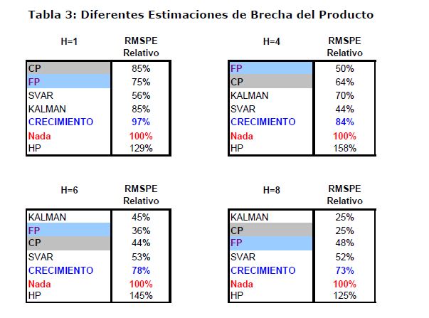 La brecha del producto es una variable clave para la política monetaria bajo el régimen de inflación objetivo. Dada la incertidumbre sobre esta medida, los equipos de inflación de los Bancos Centrales monitorean regularmente un conjunto amplio de indicadores y de estimaciones, que dan luces sobre la posición de la economía en el ciclo y posibles presiones de demanda. En este trabajo se reseñan las principales metodologías que se utilizan en el Banco de la República de Colombia para su estimación. También se comparan los pronósticos fuera de muestra, para la inflación básica, que se obtienen utilizando las diferentes medidas en una curva de Phillips híbrida.