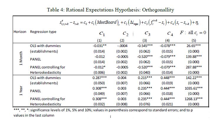 In this document we use the Expectations Survey conducted monthly by the Central Bank of Colombia during the period of October 2003 – August 2012. We find that exchange rate revaluations were generally followed by expectations of further revaluation in th