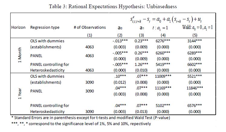 Exchange rate expectations, Risk premium, Market efficiency, Forecasting accuracy, Random walk, Forward discount, Rational expectations hypothesis